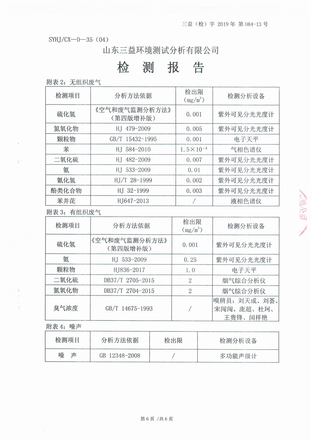 山東濰焦集團(tuán)薛城能源有限公司6月份檢測(cè)報(bào)告